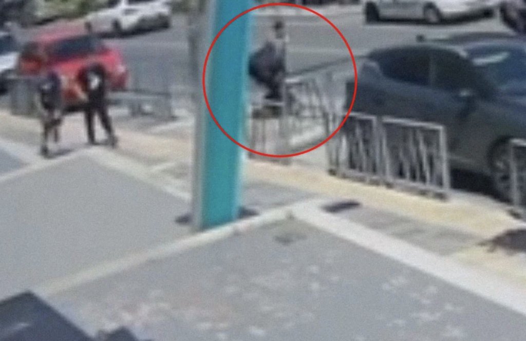 Στα επόμενα δευτερόλεπτα του βίντεο που κατέγραψαν κάμερες ασφαλείας επιχείρησης, φαίνεται η στιγμή που το αυτοκίνητο χτυπάει τη γυναίκα και το καροτσάκι με το παιδί και τους ρίχνει στην άσφαλτο, με τη ζώνη ασφαλείας να προστατεύει το παιδί που δεν έφυγε από το καροτσάκι. Επικρατεί πανικός με τη γυναίκα να σηκώνεται αμέσως και να ελέγχει αν το βρέφος είναι καλά στην υγεία του και με τον κόσμο που είδε την παράσυρση να τρέχει για να τους βοηθήσει και να καλεί στο ΕΚΑΒ.
