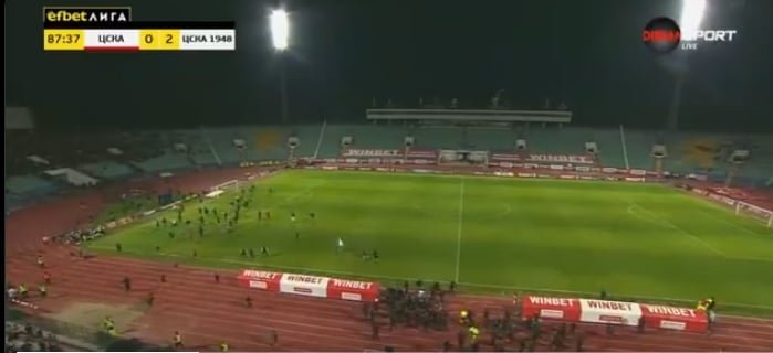 BREAKING: CSKA-Sofia ultras invaded the pitch as their team was losing 2-0 to CSKA 1948 in tonight’s European spot playoff! The match was temporarily stopped in the 88th minute, then resumed and CSKA 1948 claimed the UECL place! CSKA-Sofia’s season is a disaster… pic.twitter.com/Hv47fM1dFL