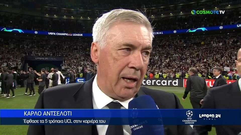 Το πέμπτο Champions League στην προπονητική του καριέρα πανηγυρίζει ο Κάρλο Αντσελότι, μετά το 2-0 της Ρεάλ Μαδρίτης στον τελικό του Γουέμπλεϊ, με τον ίδιο να υποστηρίζει ότι η κατάκτηση τροπαίων δεν συνηθίζεται.