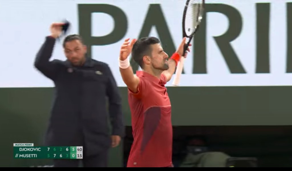 Τις 369 νίκες σε Grand Slam έφτασε ο Νόβακ Τζόκοβιτς, ισοφαρίζοντας την επίδοση του Ρότζερ Φέντερερ, αφού, στα πλαίσια του Roland Garros, επικράτησε του Λορέντζο Μουζέτι, σε ένα παιχνίδι που ολοκληρώθηκε στις 03:09 τοπική ώρα Παρισιού.