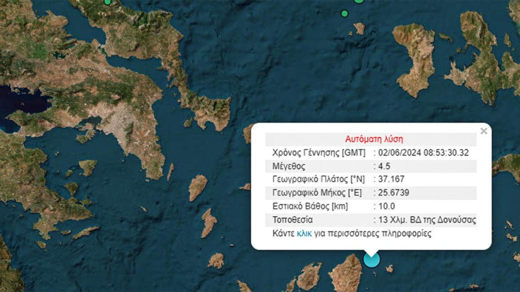 Σεισμός μεγέθους 4,3 βαθμών της κλίμακας Ρίχτερ σημειώθηκε στη θαλάσσια περιοχή ανοικτά της Κύθνου λίγα λεπτά πριν τις 12:00 το μεσημέρι (11:53) και έγινε αισθητή στην Αττική.