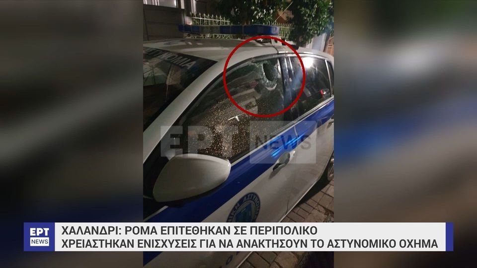 Η ΕΡΤ έφερε στη δημοσιότητα βίντεο από επιχείρηση αστυνομικών να ανακτήσουν περιπολικό, το οποίο είχε εγκατέλειψε το πλήρωμα του, μετά από επίθεση που δέχθηκαν από Ρομά στο Χαλάνδρι, έξω από καταυλισμό.