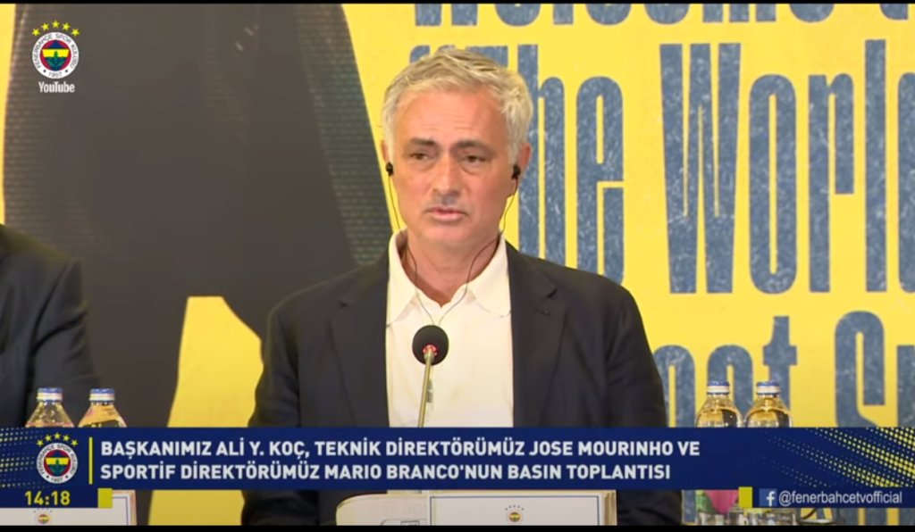 Η διοίκηση της Φενέρμπαχτσε παρουσίασε, στους εκπροσώπους του Τύπου, το νέο προπονητή της ομάδας, με τον Ζοζέ Μουρίνιο να διαψεύδει το ενδεχόμενο να φέρει, στη νέα του ομάδα, παίκτες από τη Ρόμα.