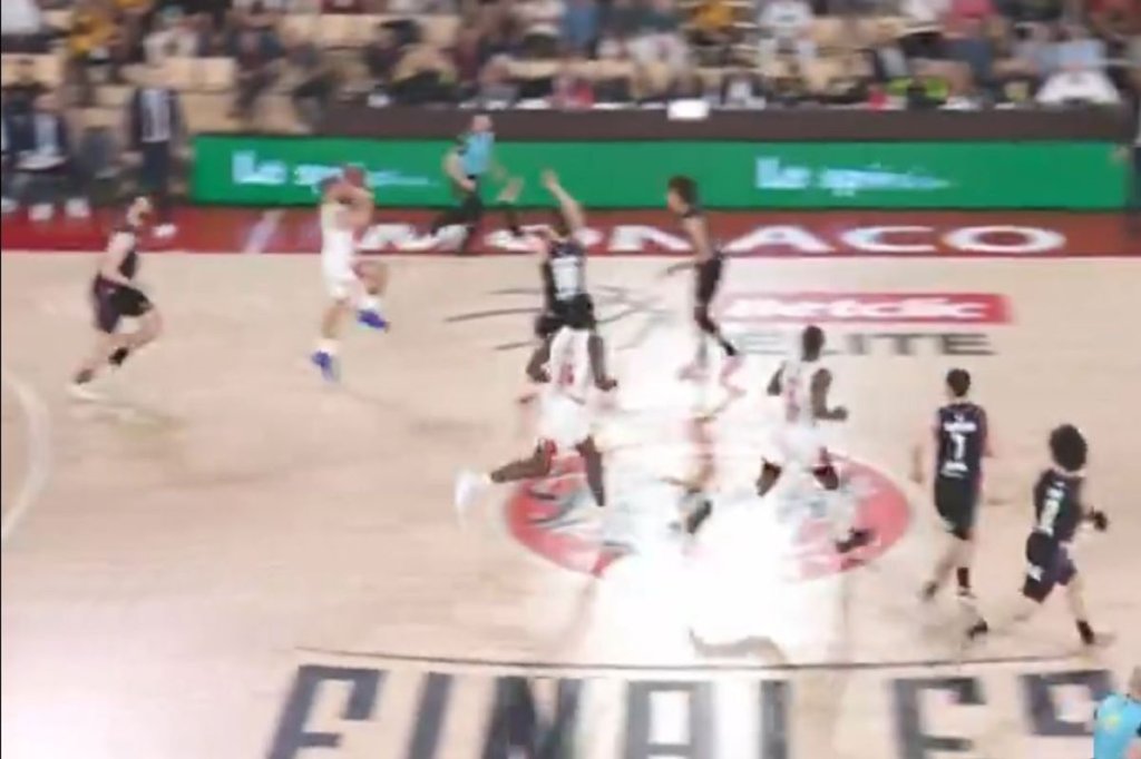 Στο φινάλε του πρώτου ημιχρόνου, ο Αμερικανός γκαρντ πέτυχε τρομερό buzzer beater, πίσω από το κέντρο, δίνοντας προβάδισμα 16 πόντων στη Μονακό. Νωρίτερα, ο Μάικ Τζέιμς προσέφερε άλλη μια εντυπωσιακή φάση, με αεροπλανικό, ανάποδο καλάθι.