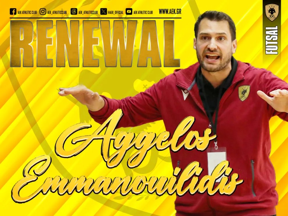 Η ΑΕΚ βρίσκεται στην ευχάριστη θέση να ανακοινώσει την ανανέωση της συνεργασίας της με τον Άγγελο Εμμανουηλίδη, ο οποίος θα παραμείνει στην τεχνική ηγεσία της ανδρικής ομάδας Futsal.