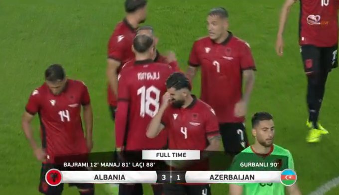 Το 1-0 παρέμενε στο μεγαλύτερο διάστημα του αγώνα, αλλά η Αλβανία φούλαρε στο τελευταίο δεκάλεπτο και καθάρισε στο ματς. Αρχικά στο 81΄ο Μανάι έγραψε το 2-0, με τον Λάτσι στο 87΄να ανεβάζει τον δείκτη του σκορ και να σφραγίζει τη νίκη της ομάδας του. Το μόνο που κατάφερε το Αζερμπαϊτζάν ήταν να μειώσει στο τελικό 3-1 με σκόρερ τον Γκουρμπάνλι.