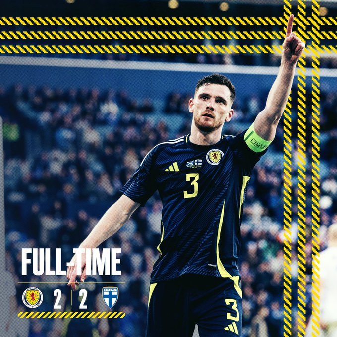 Σε φιλική αναμέτρηση που διεξήχθη στη Γλασκώβη, Σκωτία και Φινλανδία έμειναν στο 2-2. Στο 54’ οι γηπεδούχοι άνοιξαν το σκορ με αυτογκόλ του Χόσκονεν και τέσσερα λεπτά αργότερα ο Σάνκλαντ έδωσε αέρα δύο τερμάτων στην ομάδα του. Στο 72’ ο Κάλμαν και στο 85’ ο Άντμαν με εύστοχη εκτέλεση πέναλτι διαμόρφωσαν το τελικό σκορ.