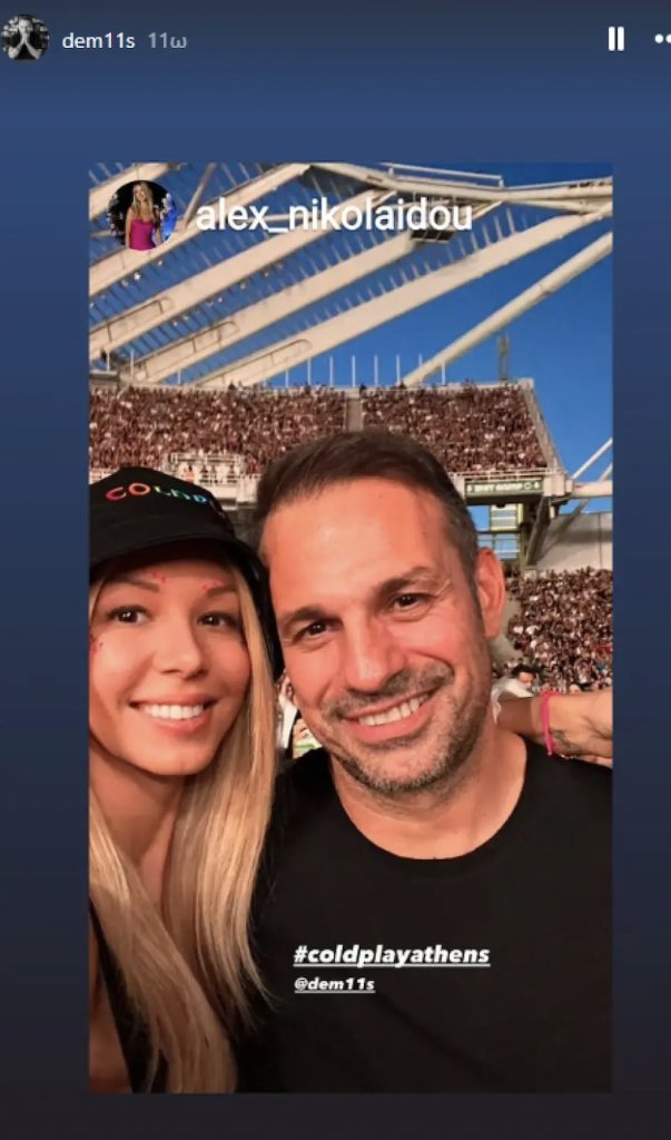 Ο Ντέμης Νικολαΐδης έκανε για πρώτη φορά κοινή ανάρτηση με τη σύντροφό του, Αλεξάνδρα Νικολαΐδου και την κόρη του, Μελίνα Νικολαΐδη. Οι τρεις τους πήγαν στη συναυλία των Coldplay, το Σάββατο 8 Ιουνίου και φωτογραφήθηκαν μαζί από το ΟΑΚΑ.