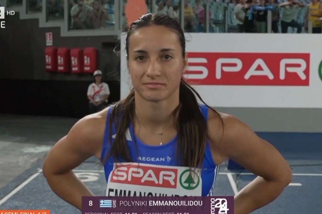 Η Πολυνίκη Εμμανουηλίδου στάθηκε επάξια στον ημιτελικό των 100 μ. στο Ευρωπαϊκό πρωτάθλημα στίβου που διεξάγεται στη Ρώμη καθώς τερμάτισε στην τέταρτη θέση της πρώτης σειράς σε 11.21 (0,7) και κατέλαβε την 11 θέση στο σύνολο.