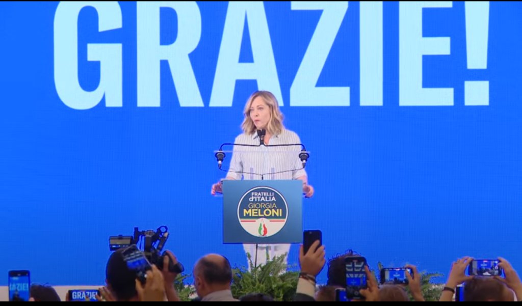 Στην Ιταλία, το κόμμα της Τζόρτζια Μελόνι, «Αδέλφια της Ιταλίας», συγκεντρώνει ποσοστό 25-30% στις Ευρωεκλογές, με την πρωθυπουργό της χώρας να ευχαριστεί τους ψηφοφόρους της για τη νίκη.