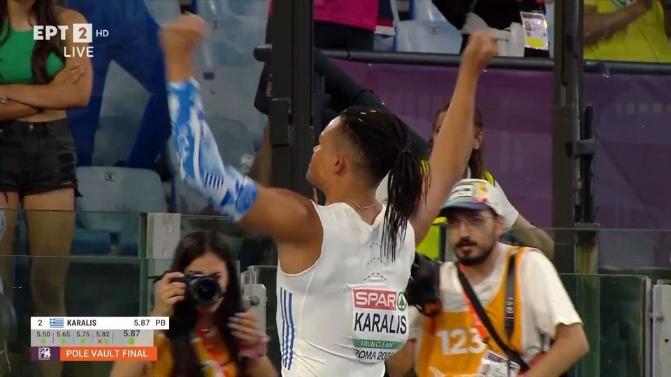 Ο Εμμανουήλ Καραλής κατέκτησε το ασημένιο μετάλλιο στο Ευρωπαϊκό Πρωτάθλημα Στίβου της Ρώμης. Ο Έλληνας πρωταθλητής του επί κοντώ πέρασε τα 5.87μ. και έκανε ατομικό ρεκόρ. Δοκίμασε στα 5.92μ. για να κάνει πανελλήνιο ρεκόρ, στα 5.97μ. και στα 6.02μ. (πρώτη φορά Έλληνας δοκίμασε αυτό το ύψος) αλλά δεν τα κατάφερε. Το χρυσό κατέκτησε ο εκπληκτικός Άρμαντ Ντουμπλάντις.