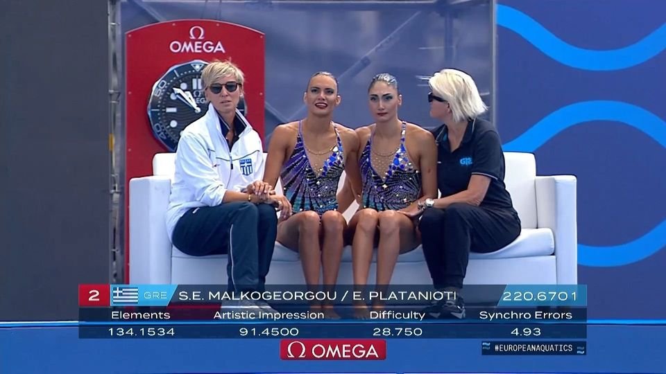 Στον τελικό του τεχνικού ντουέτου της καλλιτεχνικής κολύμβησης, στο Ευρωπαϊκό υγρού στίβου στο Βελιγράδι τα κορίτσια της Ελλάδας, οι Ευαγγελία Πλατανιώτη και Σοφία Μαλκογεώργου κατέλαβαν την 5η θέση.