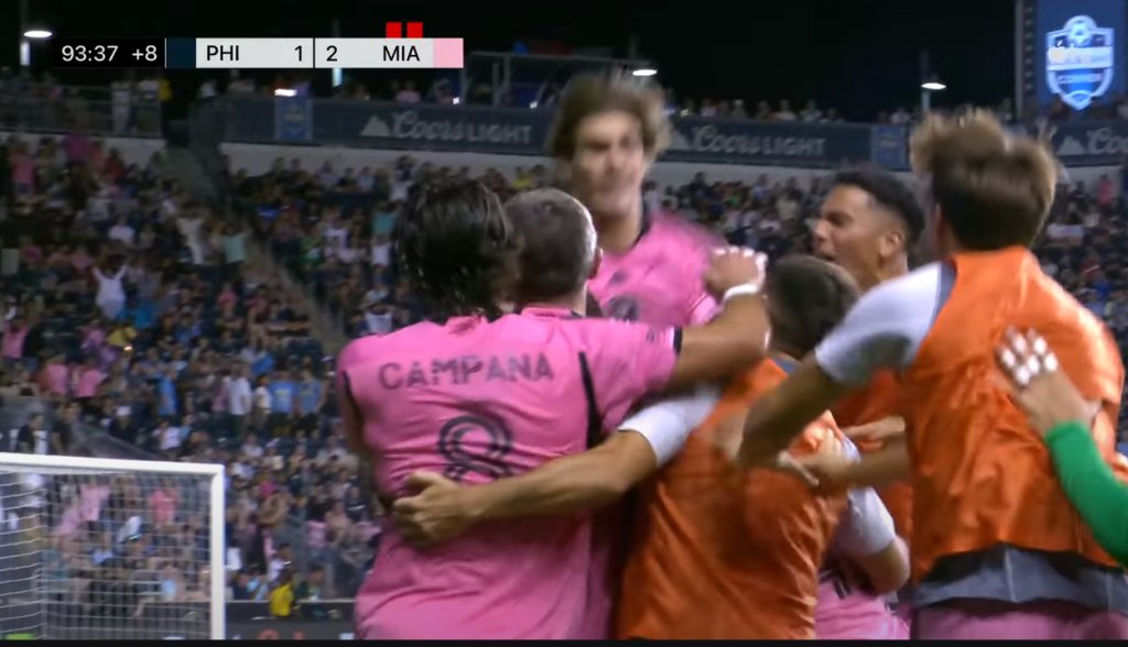 Με γκολ στο 94ο λεπτό, η Ίντερ Μαϊάμι έφυγε νικήτρια, 2-1, από την έδρα της Φιλαδέλφεια Γιούνιον, φτάνοντας στην ανατροπή, παρά το γεγονός πως αγωνιζόταν με εννέα παίκτες και δεν είχε στη διάθεσή της τον Λιονέλ Μέσι και τον Λουίς Σουάρες.
