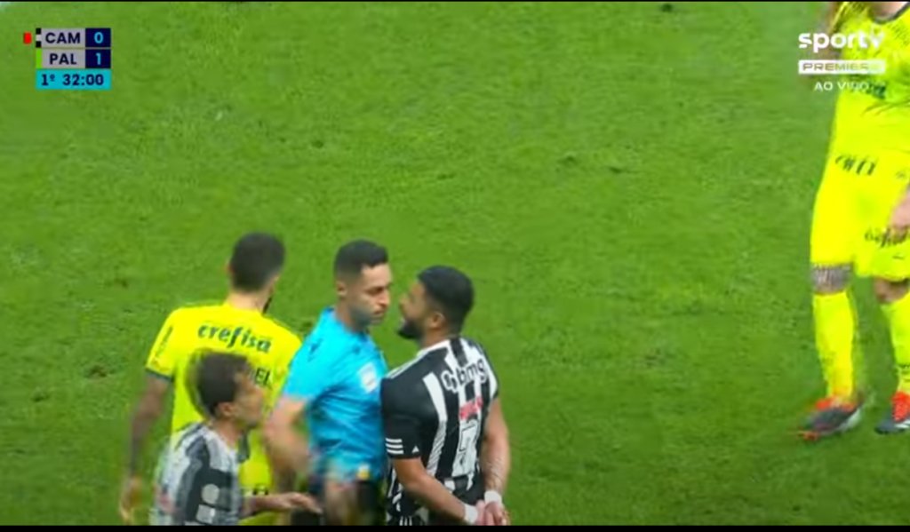 Πριν τη λήξη του ημιχρόνου και ενώ έχανε 1-0 από την Παλμέιρας, η Ατλέτικο Μινέιρο έμεινε με δέκα παίκτες, διότι, μέσα σε λίγα δευτερόλεπτα, ο Χουλκ δέχτηκε δυο κίτρινες κάρτες και αποβλήθηκε.