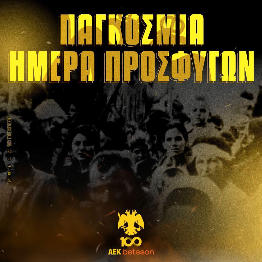 Η Παγκόσμια Ημέρα Προσφύγων είναι σήμερα, δηλαδή στις 20 Ιουνίου και μετά από την σχετική ανάρτηση της Ερασιτεχνικής, ήρθε η σειρά και της ΚΑΕ ΑΕΚ, να κάνει μία σχετική δημοσίευση στα μέσα κοινωνικής δικτύωσής της. Συγκεκριμένα, στην επίσημη σελίδα της Βασίλισσας στο Facebook, έγινε μία ανάρτηση που γράφει τα εξής: «World Refugee Day