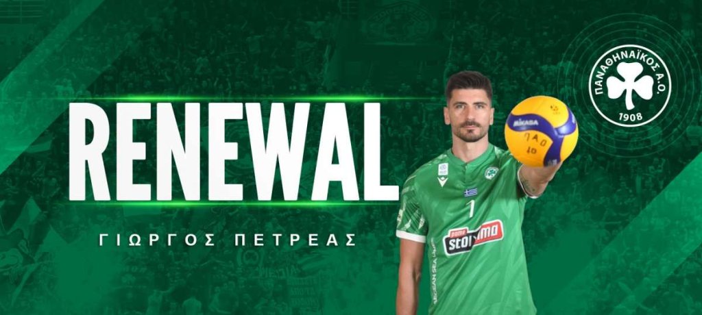 Ο Παναθηναϊκός Αθλητικός Όμιλος ανακοινώνει την ανανέωση της συνεργασίας του με τον Γιώργο Πετρέα για την αγωνιστική σεζόν 2024-2025 για το ανδρικό τμήμα βόλεϊ.