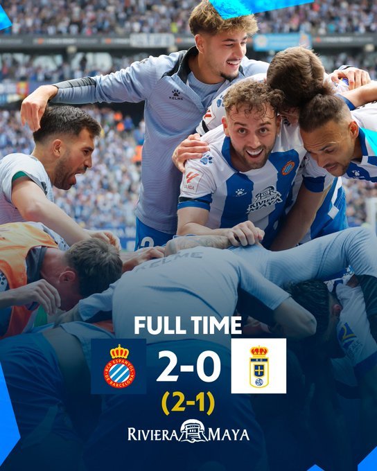 Στόχος επετεύχθη για την Εσπανιόλ, η οποία πήρε την άνοδο και επέστρεψε στην πρώτη κατηγορία του Ισπανικού πρωταθλήματος της νέας σεζόν! Η ομάδα του Μανόλο Γκονζάλες, έκανε την ανατροπή απέναντι στην Οβιέδο, από την οποία έχασε στο πρώτο παιχνίδι με 1-0, κερδίζοντας την στον επαναληπτικό με 2-0. Χρυσός σκόρερ της ήταν ο Χάβι Πουάδο, ο οποίος σημείωσε και τα δύο γκολ της στο φινάλε του πρώτου ημιχρόνου και συγκεκριμένα στο 44' και 45+2'.
