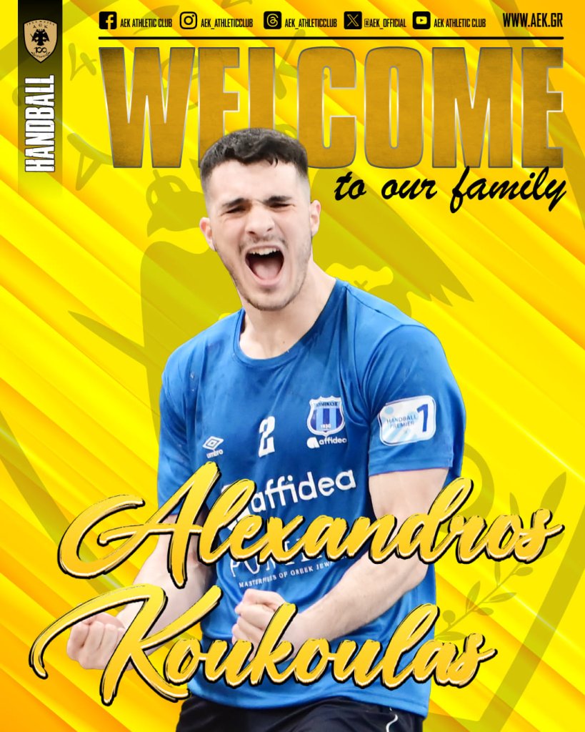 Ξεκίνησε η μεταγραφική ενίσχυση για το τμήμα χάντμπολ των Ανδρών της ΑΕΚ, αφού ανακοινώθηκε επίσημα η απόκτηση του Αλέξανδρου Κουκουλά. Πρόκειται για 21χρονο δεξιό ίντερ, που είναι διεθνής με την Εθνική Νέων, ενώ αγωνιζόταν μέχρι πρότινος στον Ιωνικό Νέας Φιλαδέλφειας.