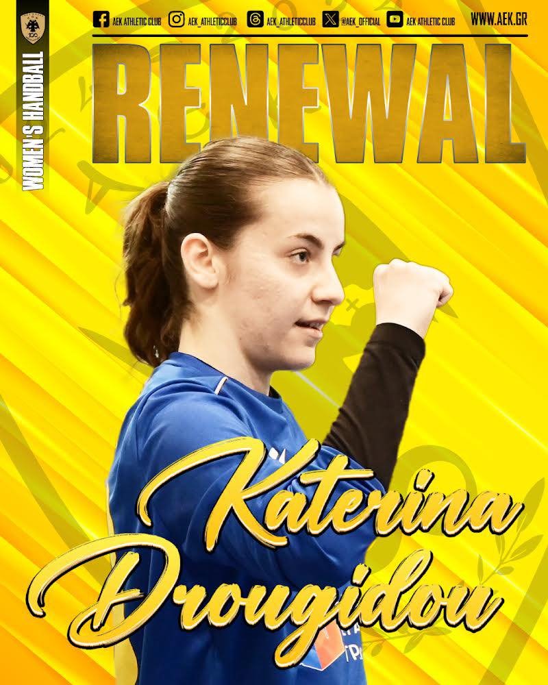 Η επίσημη ανακοίνωση της Ερασιτεχνικής ΑΕΚ έχει ως ακολούθως: «Η ΑΕΚ βρίσκεται στην πολύ ευχάριστη θέση να ανακοινώσει την ανανέωση της συνεργασίας της με την Κατερίνα Δρουγκίδου. Η νεαρή τερματοφύλακας, γεννημένη στις 29/06/2007, θα βρίσκεται και τη νέα σεζόν στο τμήμα του Χάντμπολ Γυναικών της ΑΕΚ.