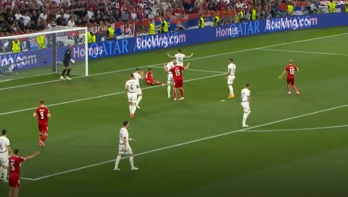 Στο 23ο λεπτό ακυρώθηκε γκολ του Βιντ για επιθετικό φάουλ στον Ραΐκοβιτς και στο 39’ οι Δανοί άλλαξαν υπέροχα και ο Βιντ έπιασε το σουτ από το ύψος της περιοχής αλλά η μπάλα έξυσε το δοκάρι της Σερβίας.
