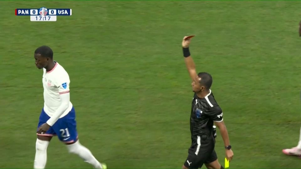 Στο 18ο λεπτό, οι Αμερικανοί έμειναν με παίκτη λιγότερο, διότι ο Γουεά αντίκρισε, απευθείας, κόκκινη κάρτα, για χτύπημα εκτός φάσης, με τον VARίστα να συμβουλεύει τον διαιτητή και τον ρέφερι να αλλάζει την αρχική του απόφαση, να δείξει, δηλαδή, κίτρινη.