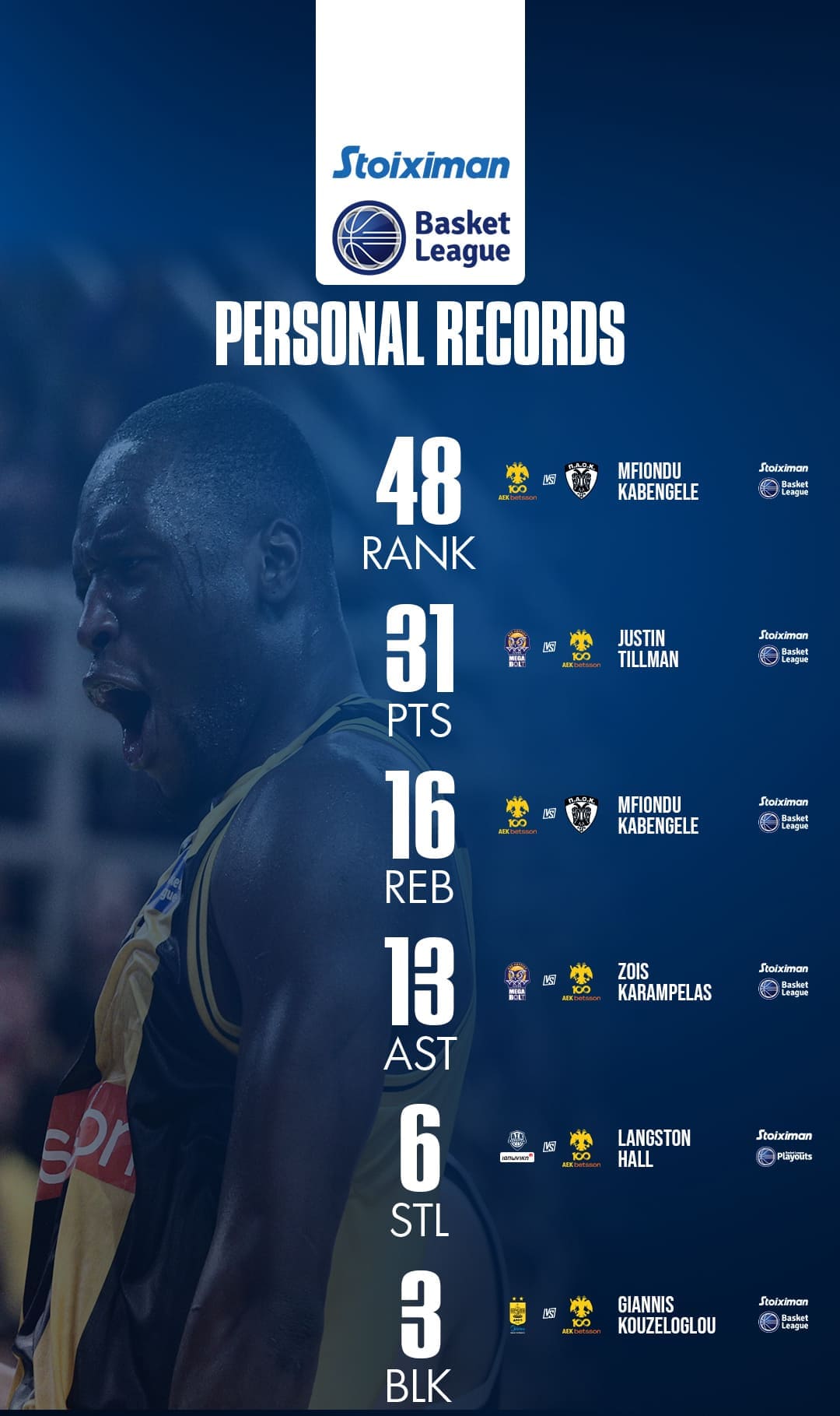 Δύο παίκτες της ΑΕΚ Betsson που πέρασαν από τη φετινή ομάδα χωρίς να μείνουν ως το τέλος της σεζόν σε αυτήν, ήταν εκείνοι που είχαν τους δύο από τους τρεις μεγαλύτερους μέσους όρους στο ranking. Ο Εμφιόντου Καμπενγκέλε στα έξι παιχνίδια που έκανε στη Stoiximan Basket League είχε 20 στο σύστημα αξιολόγησης ενώ ο Τζάστιν Τίλμαν ήταν 3ος με έναν μέσο όρο στο 14,23. Ανάμεσα στους δύο βρέθηκε ο Μιντάουγκας Κουζμίνσκας με 18.