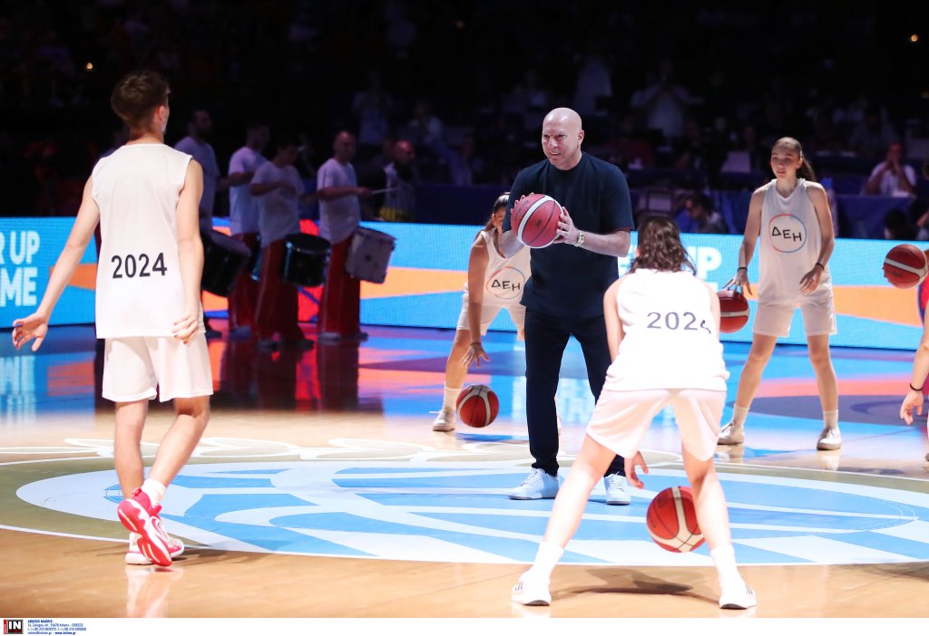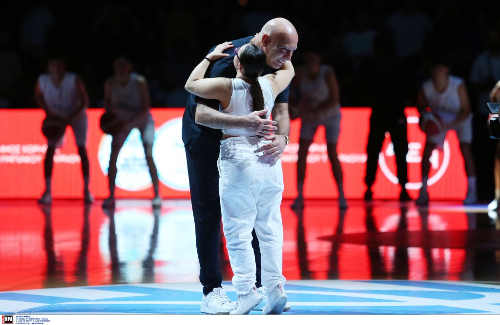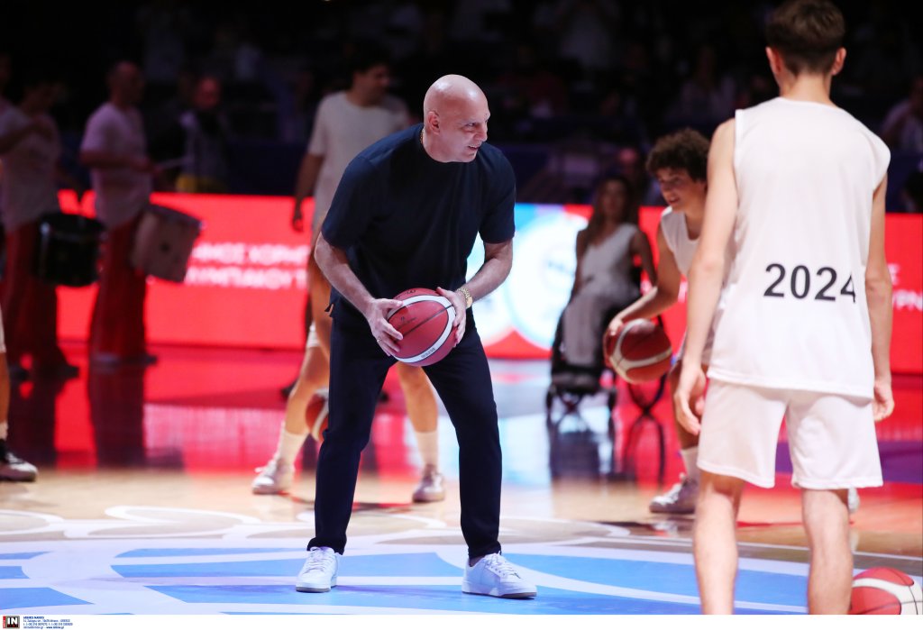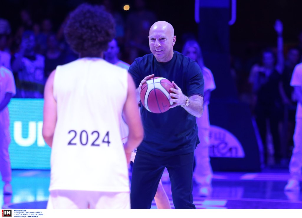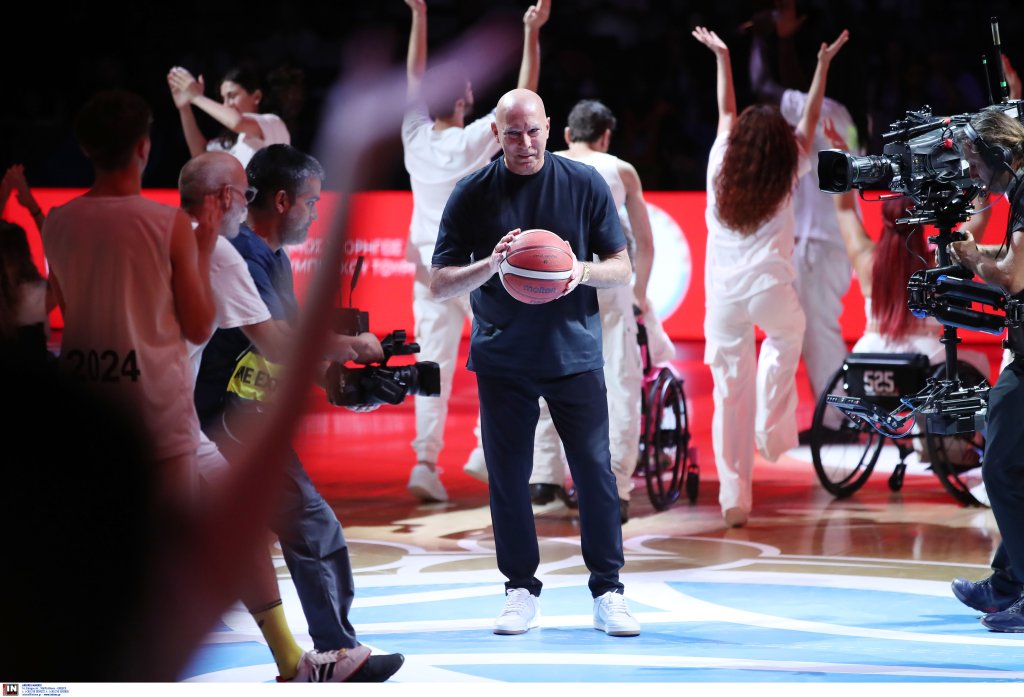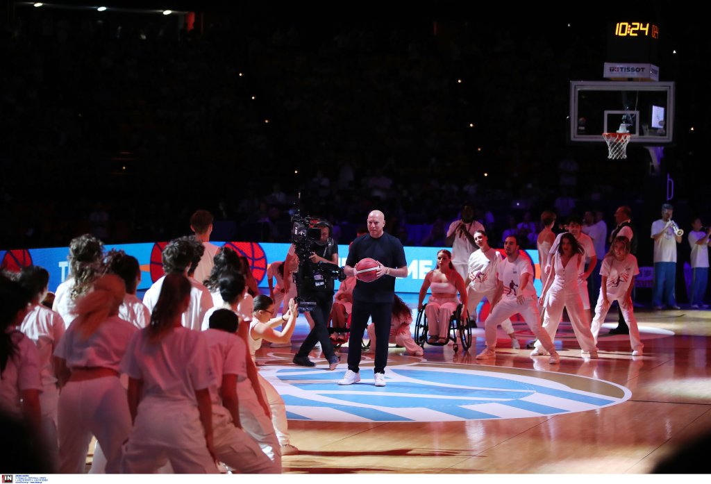 Ο θρύλος του ελληνικού μπάσκετ βρισκόταν στο κέντρο του γηπέδου, ενώ γύρω του εκτυλισσόταν μια μοναδική χορογραφία, η οποία περιλάμβανε εντυπωσιακό παιχνίδι με τα φώτα, μπάλες μπάσκετ και φυσικά, όλα αυτά υπό τους ήχους του "The Final Countdown", του τραγουδιού ύμνου της θρυλικής ομάδας του 1987, που κατέκτησε το Eurobasket στο ίδιο παρκέ.
