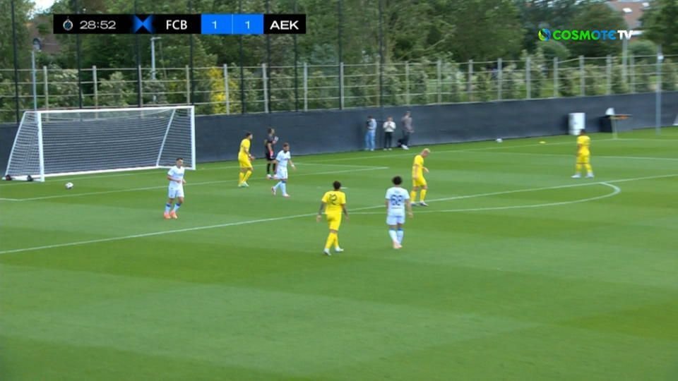 Στο 29ο λεπτό έγινε η βαθιά μπαλιά από τον Βανάκεν στην πλάτη της ΑΕΚ, έφυγε τετ α τετ ο Ζουτγκλά πλάσαρε σωστά τον Μπρινιόλι και 2-1. Η ΑΕΚ φώναξε για οφσαιντ. Που δεν δόθηκε.