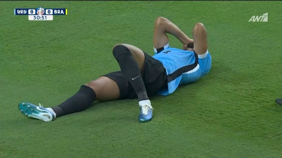 Στο 33ο λεπτό, ο Ουρουγουανός κεντρικός αμυντικός έγινε αναγκαστική αλλαγή, όταν, σε προσπάθεια για τάκλιν, έπεσε στο χορτάρι, πιάνοντας τον δεξιό οπίσθιο μηριαίο.