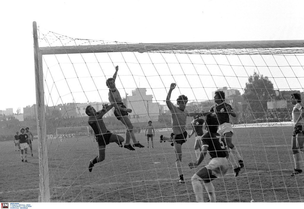Στον αγώνα με τον νταμπλούχο 1977 Παναθηναϊκό που έγινε στη Χαλκίδα (ναι, αθηναϊκό ντέρμπι σε ένα από τα πιο ακατάλληλα γήπεδα της ελληνικής επαρχίας, ακόμα και για τα δεδομένα εκείνης της εποχής) με τυπικά γηπεδούχους τους τιμωρημένους «πράσινους», η ΑΕΚ πιστοποίησε την ανωτερότητά της. Μπορεί να βρέθηκε να χάνει στο πρώτο ημίχρονο με γκολ του Αχιλλέα Ασλανίδη με κτύπημα φάουλ που δεν συγκράτησε ο Λάκης Στεργιούδας στο 27’ (έκανε, πάντως, και μεγάλη απόκρουση σε σουτ του ίδιου παίκτη στο 31’) αλλά αντέδρασε στο δεύτερο ημίχρονο, πήρε την ισοπαλία, ενώ θα έπρεπε να είναι νικήτρια.