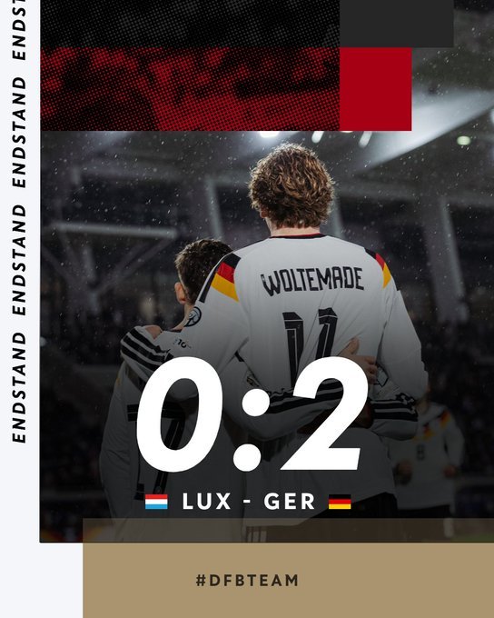 Η Γερμανία με μέτρια εμφάνιση κέρδισε με 2-0 το Λουξεμβούργο έκτος έδρας, με δύο γκολ από τον Βολτεμάντε. Πλέον, η ομάδα του Γιούλιαν Νάγκελσμαν ψάχνει νίκη ή ισοπαλία κόντρα στη Σλοβακία για να εξασφαλίσει πρωτιά και πρόκριση στο Παγκόσμιο Κύπελλο.