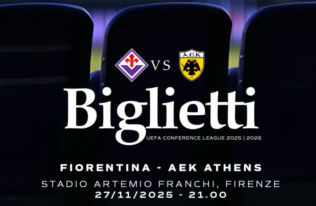 H Φιορεντίνα έθεσε σε κυκλοφορία τα εισιτήρια για το παιχνίδι με την ΑΕΚ στο «Αρτέμιο Φράνκι» την Πέμπτη 27 Νοεμβρίου στις 22:00.