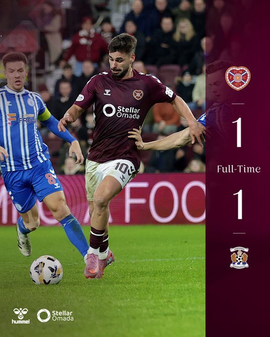 Γκέλα από το πουθενά για τη Χαρτς, η οποία δεν τελείωσε την Κιλμάρνοκ και το πλήρωσε στο 90’ μένοντας το 1-1 εντός έδρας. Η υπεροχή της Χαρτς καρποφόρησε το 49ο λεπτό με τον αρχισκόρερ της Σάκλαντ να ανοίγει το σκορ και να δίνει προβάδισμα στην πρωτοπόρο με 1-0. Στο 90ο λεπτό η Κιλμάρνοκ σόκαρε τη Χαρτς βρίσκοντας γκολ ισοφάρισης με τον Άντερσον.