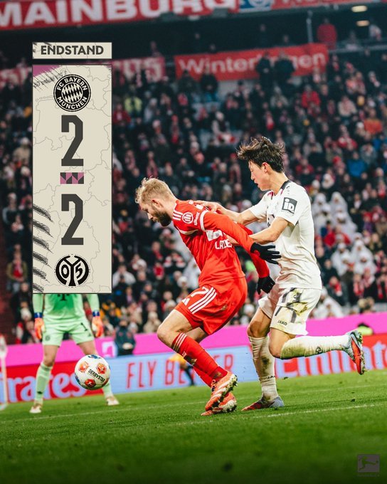 Σε ένα καταπληκτικό παιχνίδι στο Μόναχο η Μάιντς άντεξε στην πίεση και πήρε βαθμό από την Μπάγερν (2-2). Έσωσε το αήττητο στο τέλος η ομάδα του Κομπανί με εύστοχο χτύπημα πέναλτι του Κέιν στο 88'.