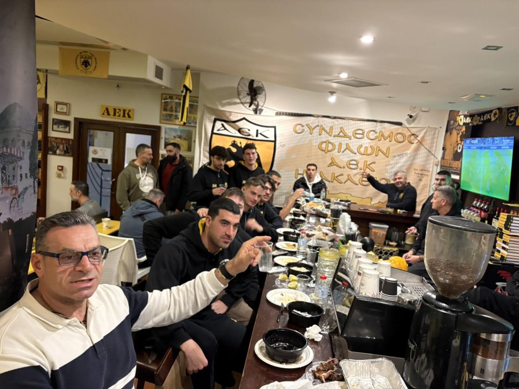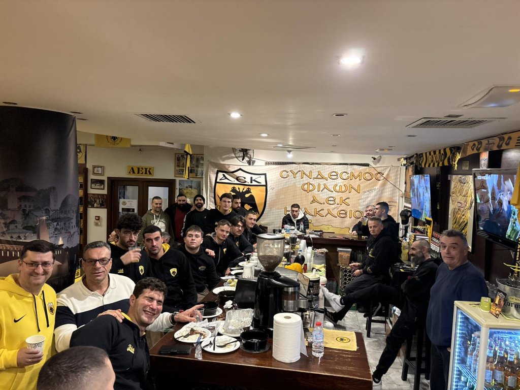 Η ομάδα πόλο της Α.Ε.Κ. με την ευκαιρία των αγώνων που έδωσε το Σαββατοκύριακο στο κολυμβητήριο Ηρακλείου, επισκέφτηκε τον Σύνδεσμο Φίλων ΑΕΚ Ηρακλείου Κρήτης-1974. Σε μια πολύ ζέστη ατμόσφαιρα οι αθλητές της ομάδας απόλαυσαν την φιλοξενία των μελών του Συνδέσμου και ανταπέδωσαν μεταδίδοντας τη μαγεία που έχει ο ερασιτέχνης αθλητής με τον ΔΙΚΕΦΑΛΟ στη καρδιά.