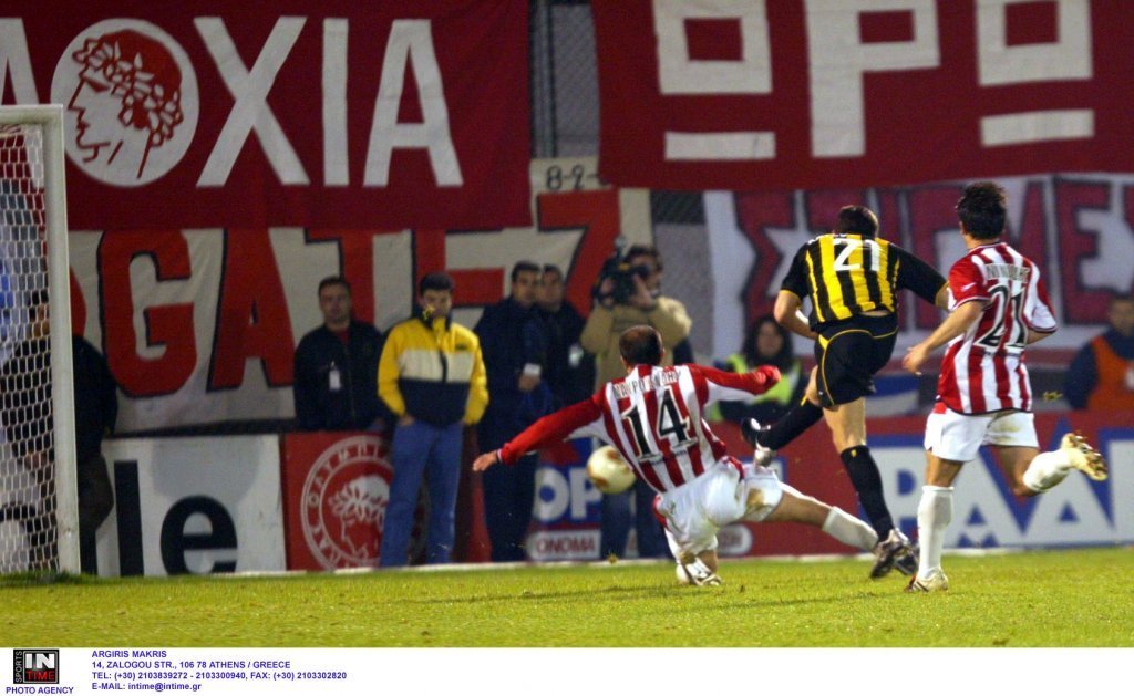 Η ΑΕΚ υπερείχε από την αρχή και προηγήθηκε με κεφαλιά του Ντέμη Νικολαϊδη (μπροστά στην εξέδρα της ΑΕΚ, στο πέταλο προς τις γραμμές του ΗΣΑΠ) στο 33΄μετά από σέντρα ακριβείας του Βασίλη Μπορμπόκη. Θα μπορούσε μάλιστα να έχει κάνει και το 0-2, όμως ο Φάνης Κατεργιαννάκης είχε κάνει το μεγαλύτερο παιχνίδι του με τον Ολυμπιακό εκείνο το απόγευμα της Κυριακής της Αποκριάς. Ειδικά τα δύο τετ α τετ του Ιβιτς που μπορείτε να δείτε στο βίντεο, είναι απίστευτα!