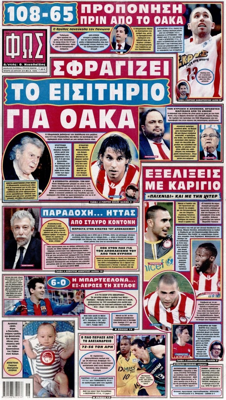 Τετάρτη 29 ΑΠΡΙΛΙΟΥ 2015