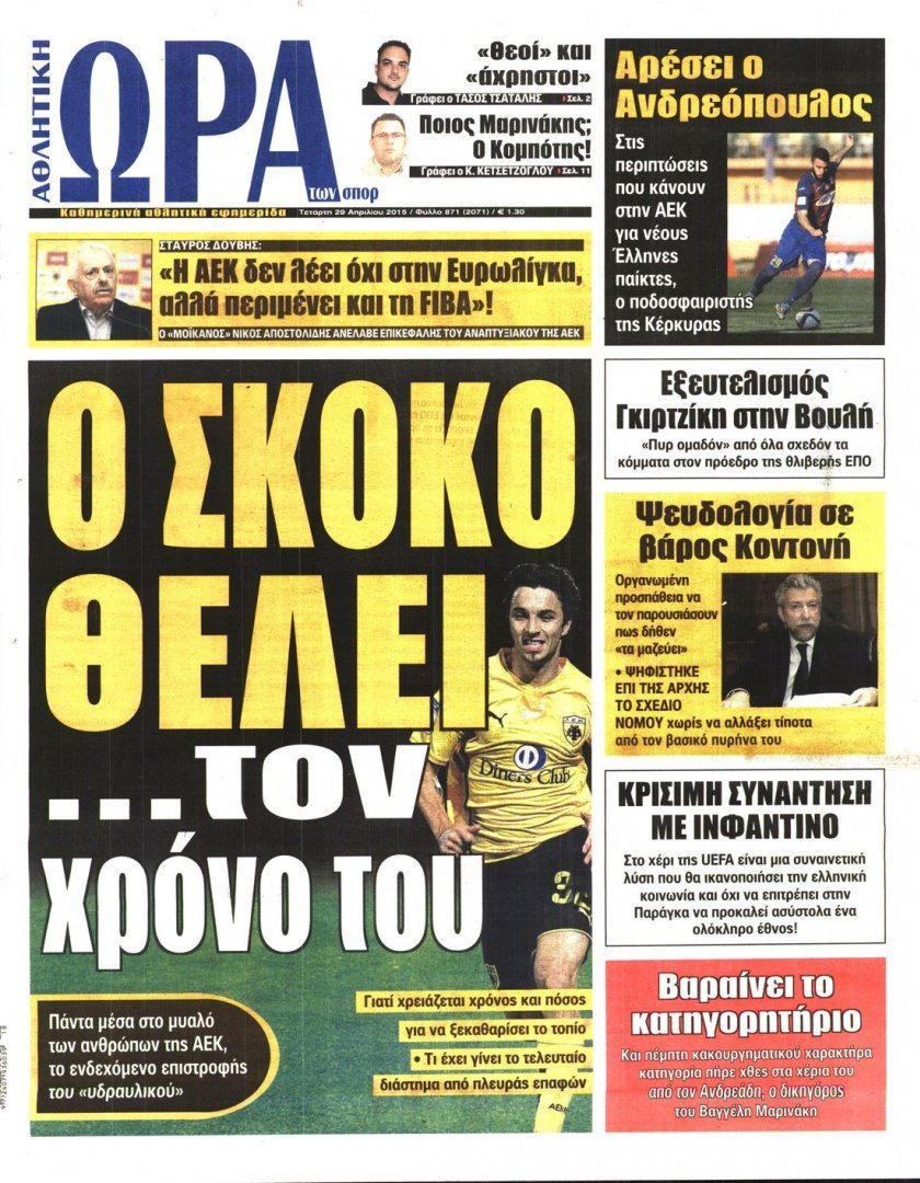 Τετάρτη 29 ΑΠΡΙΛΙΟΥ 2015