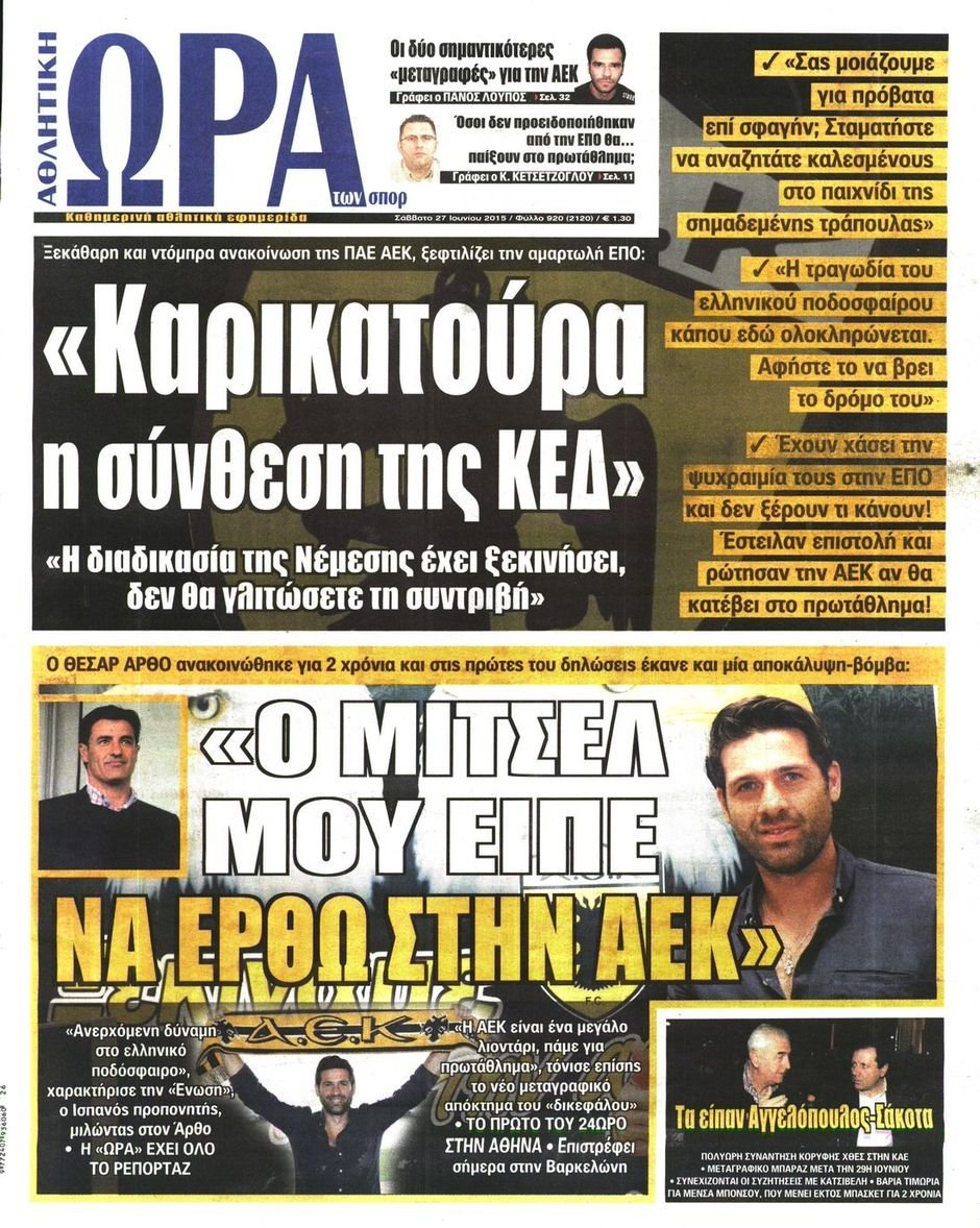 Σάββατο 27 ΙΟΥΝΙΟΥ 2015
