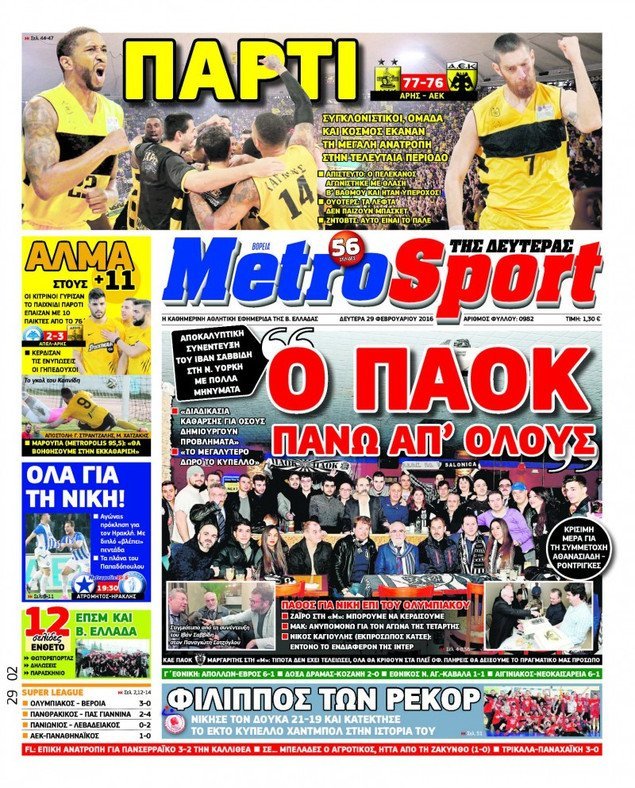 Δευτέρα 29 ΦΕΒΡΟΥΑΡΙΟΥ 2016