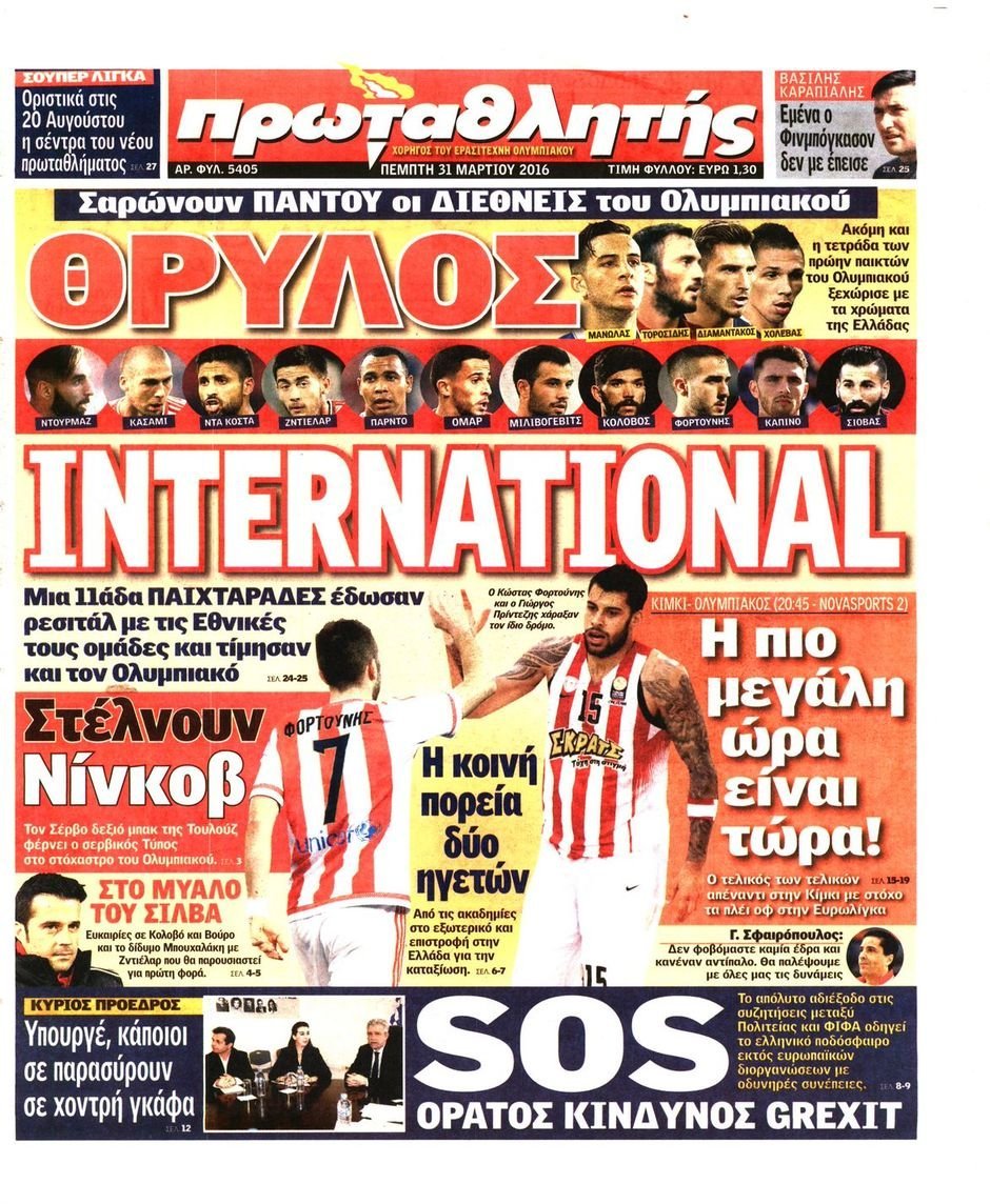 Πέμπτη 31 ΜΑΡΤΙΟΥ 2016