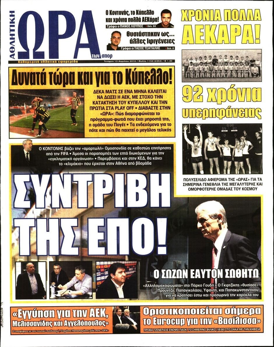 Τετάρτη 13 ΑΠΡΙΛΙΟΥ 2016