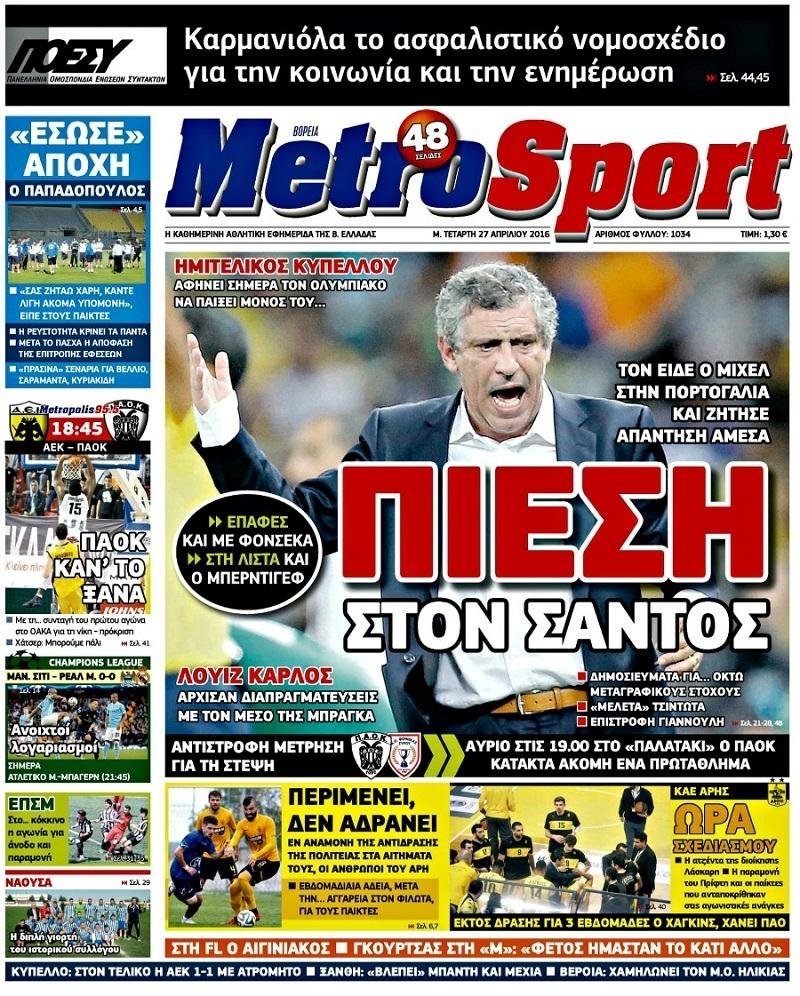Τετάρτη 27 ΑΠΡΙΛΙΟΥ 2016
