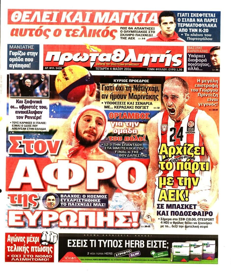 Τετάρτη 04 ΜΑΪΟΥ 2016