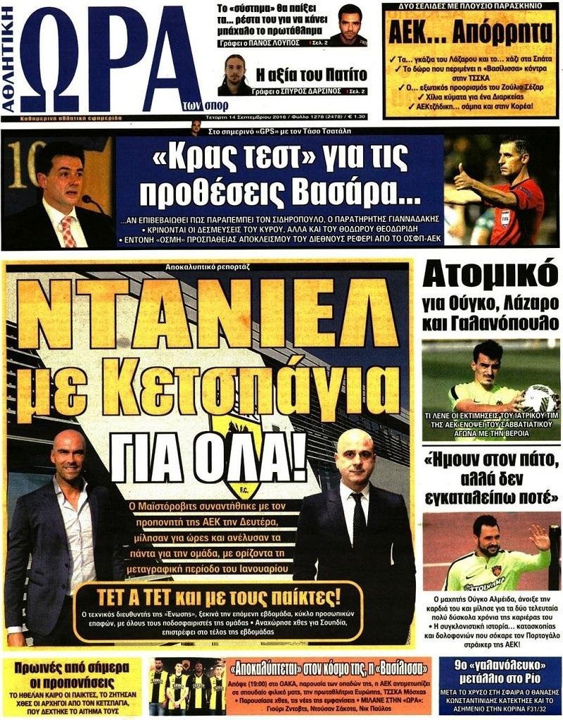 Τετάρτη 14 ΣΕΠΤΕΜΒΡΙΟΥ 2016