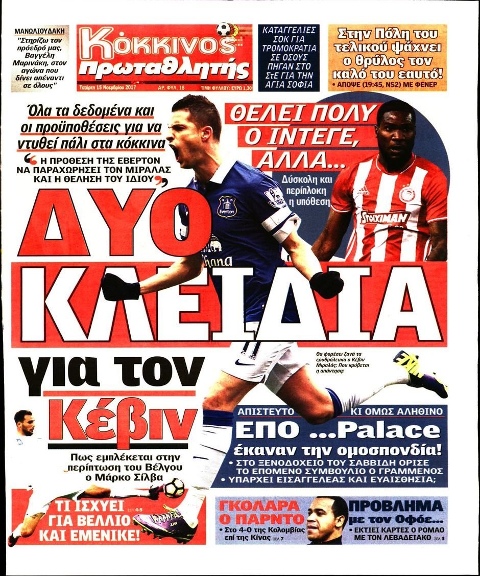 Τετάρτη 15 ΝΟΕΜΒΡΙΟΥ 2017
