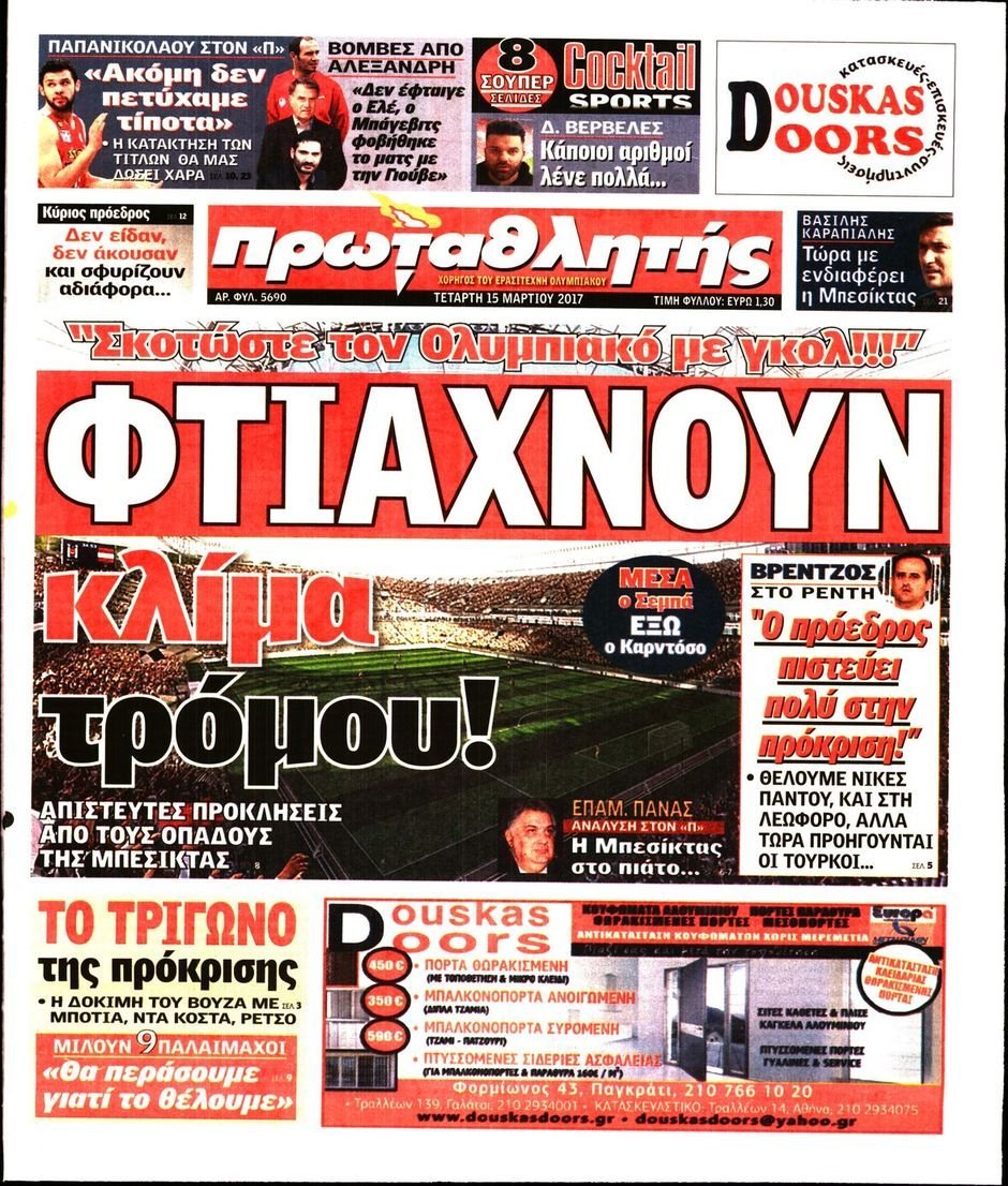 Τετάρτη 15 ΜΑΡΤΙΟΥ 2017