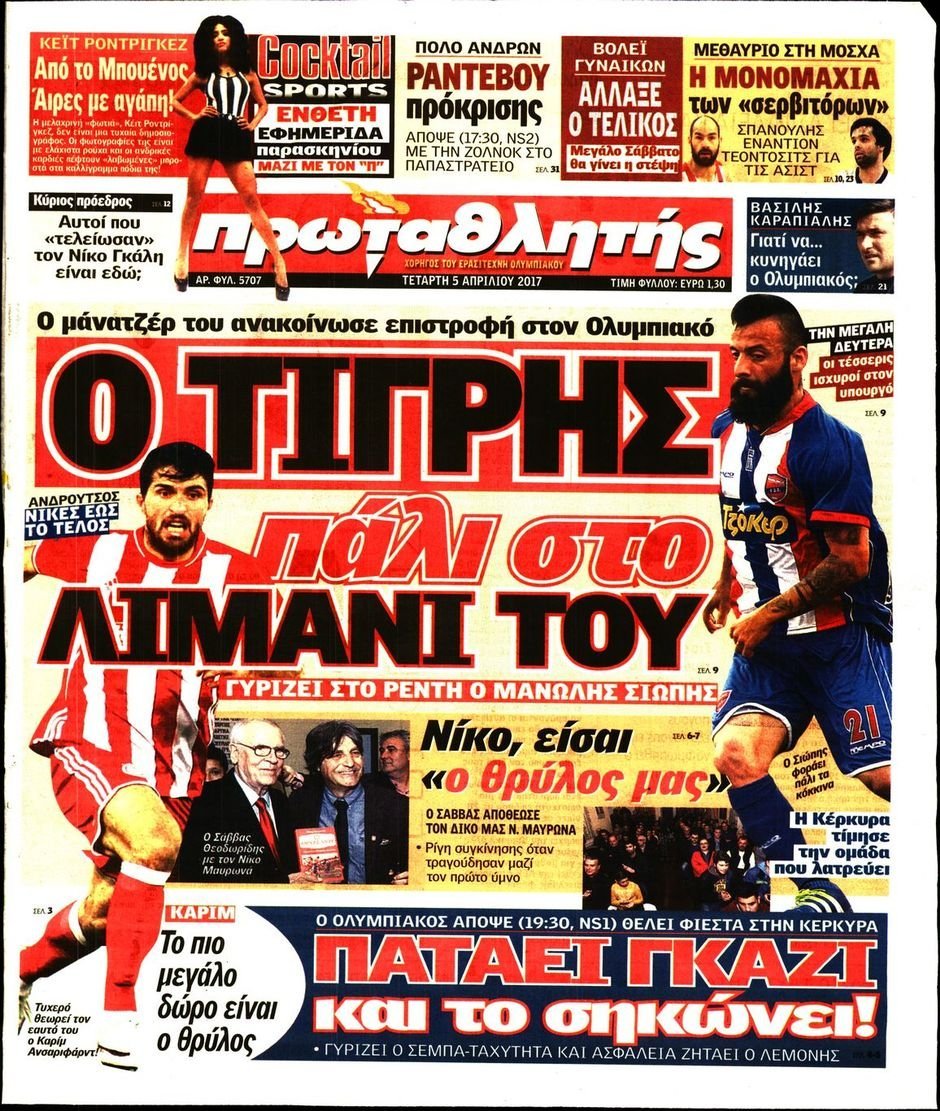 Τετάρτη 05 ΑΠΡΙΛΙΟΥ 2017