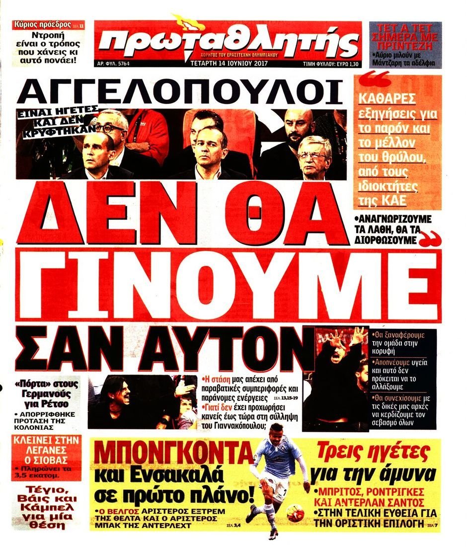 Τετάρτη 14 ΙΟΥΝΙΟΥ 2017