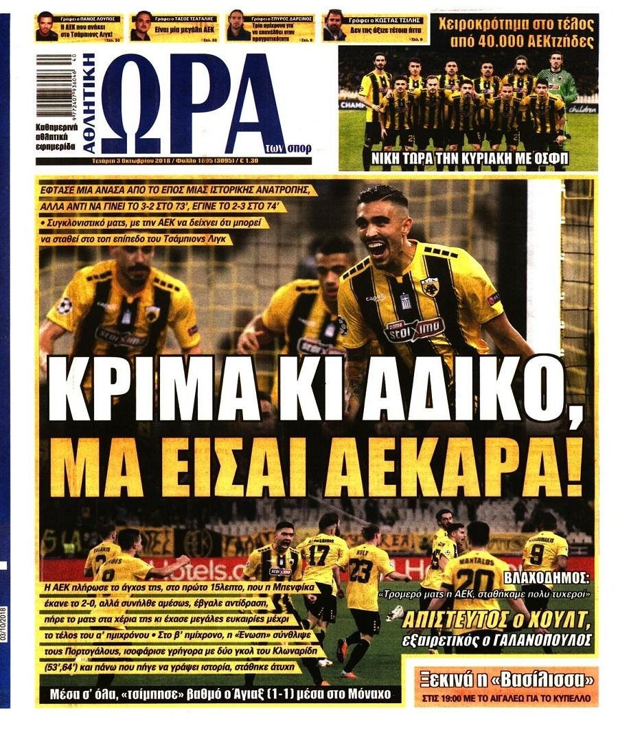 Τετάρτη 03 ΟΚΤΩΒΡΙΟΥ 2018
